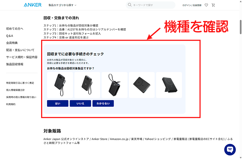 調べてみるとAnkerの公式サイトでリコールのお知らせが出ており、対象機種かもしれないと不安に。
