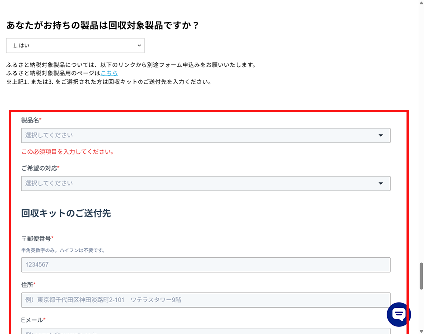 対象だった場合、そのままフォームから回収依頼を行えます。