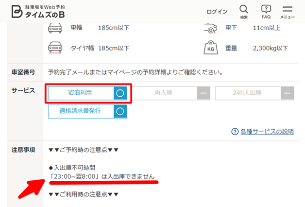 • 日またぎ(宿泊利用)は駐車場によって可能。細かい注意点は確認必須