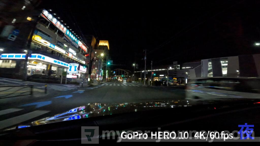 夜間ですが、GoProは光源がぼやけており、白く潰れています。