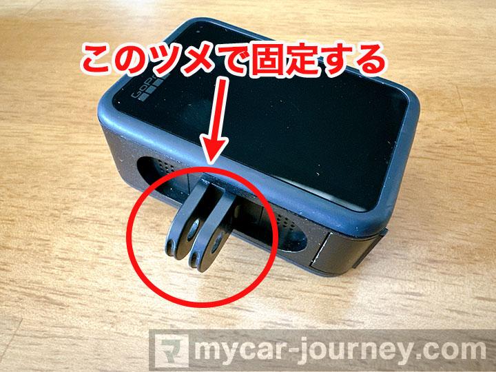 GoProの場合は、本体側に「フィンガージョイント」と呼ばれるツメがあるので、これに適合すれば問題ありません。