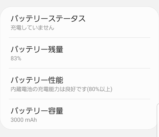 GalaxyS8のバッテリー確認画面