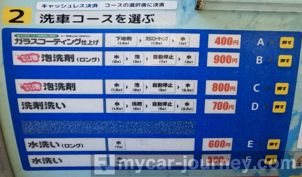 普段はコイン洗車場でスプレー洗車機を使っているのですが、コースが以下のような感じになっています。