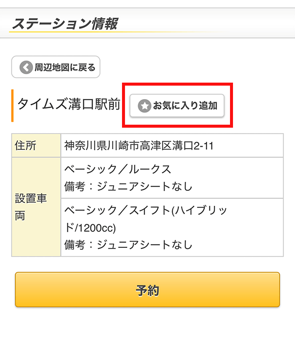 お気に入り登録したステーションは、「簡単予約」からすぐに予約登録に遷移できます。