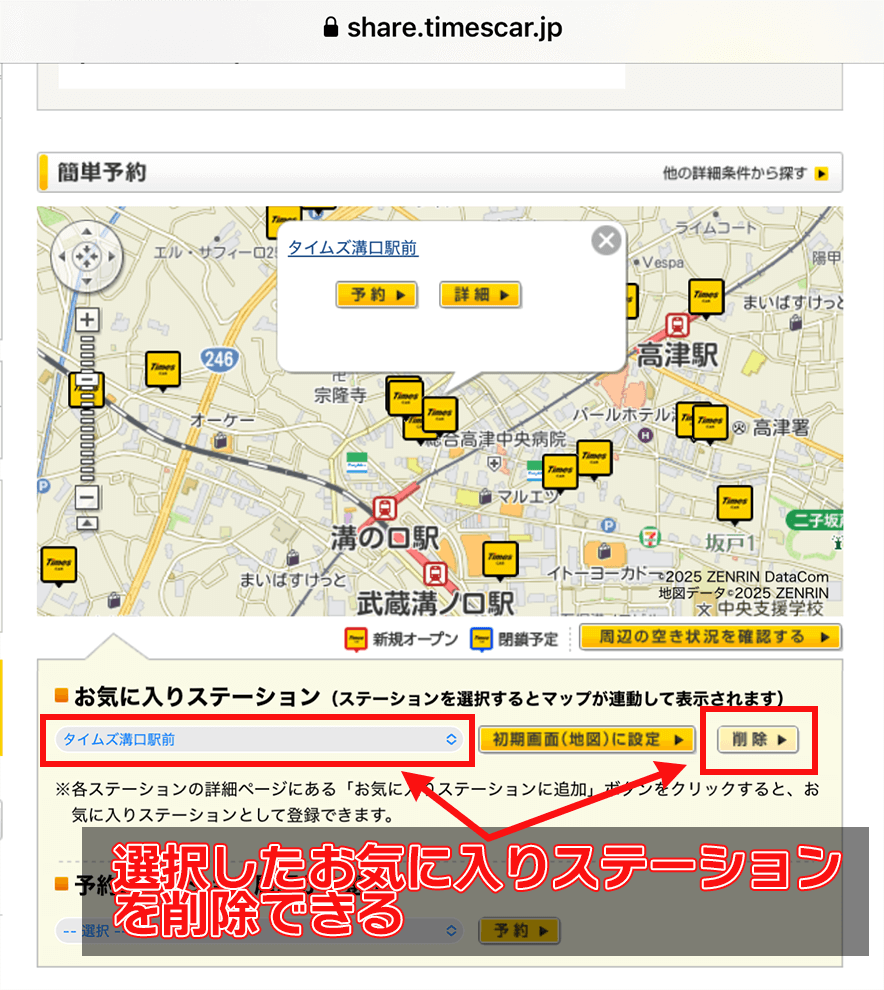 その一方、タイムズカーの公式サイトからも予約やステーションの検索を行うことができます。