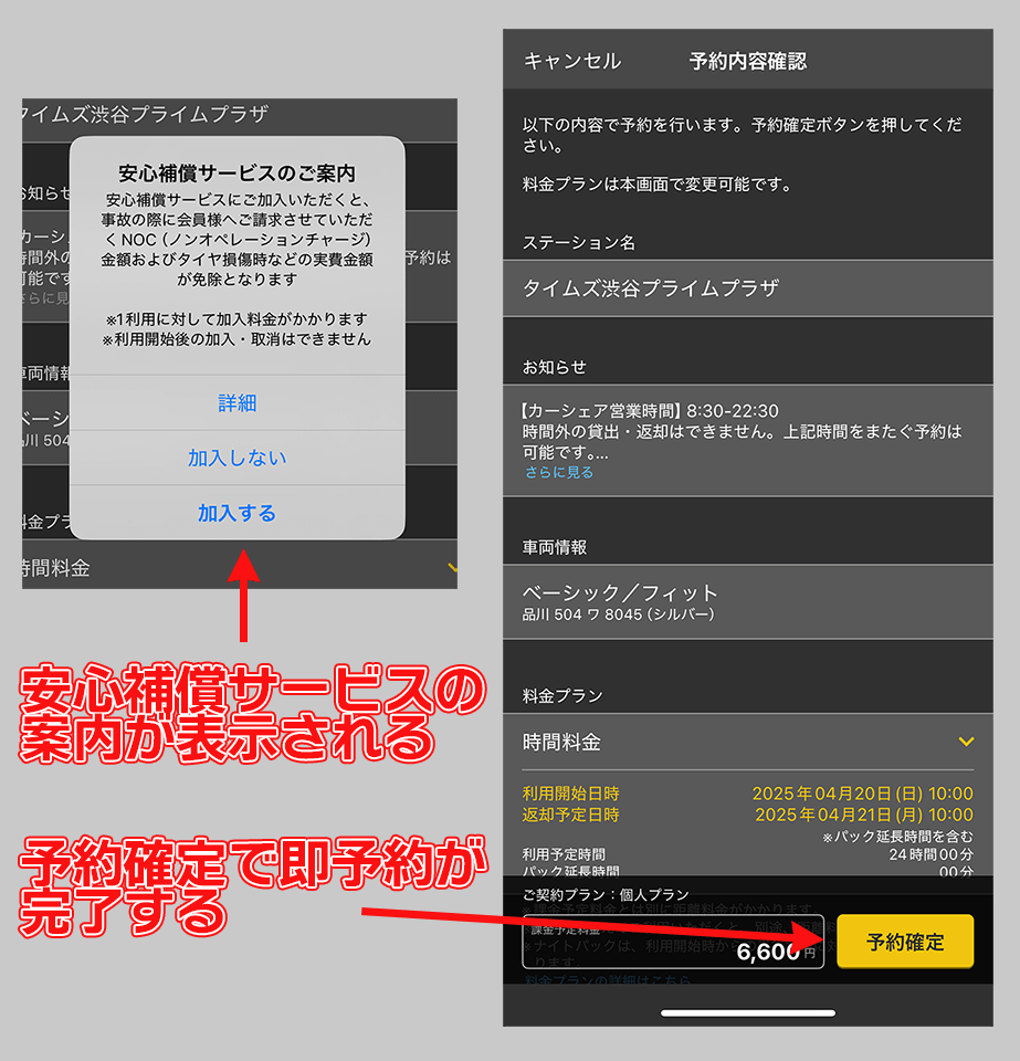 しかし、アプリで「空き車両を見つけて即予約する」場合、基本的にNOC補償(免責補償)の設定しかできません。